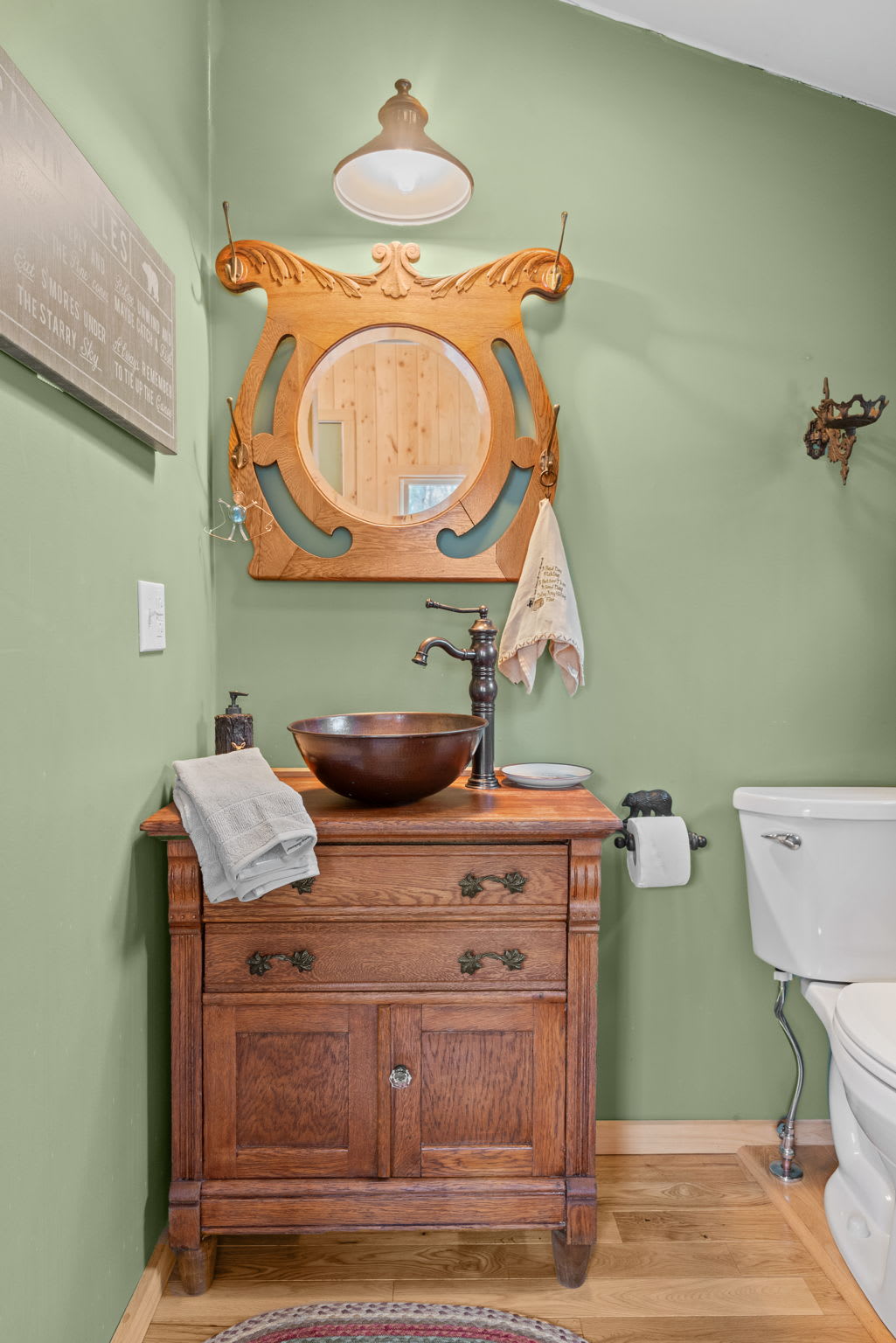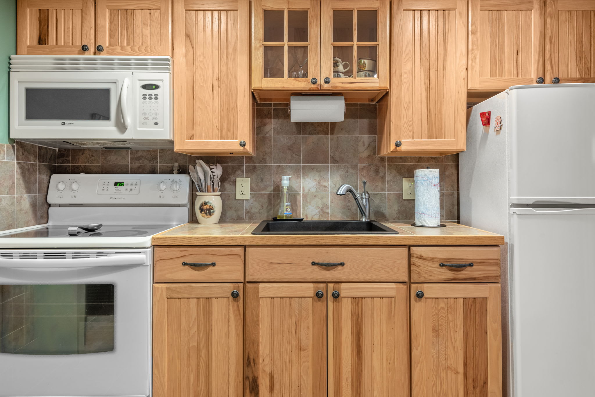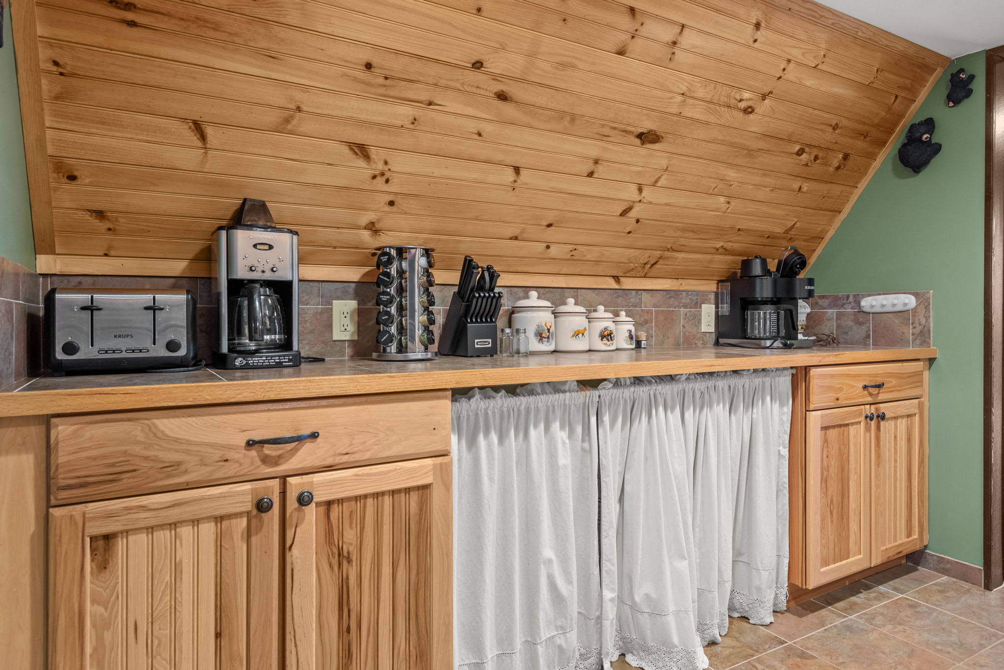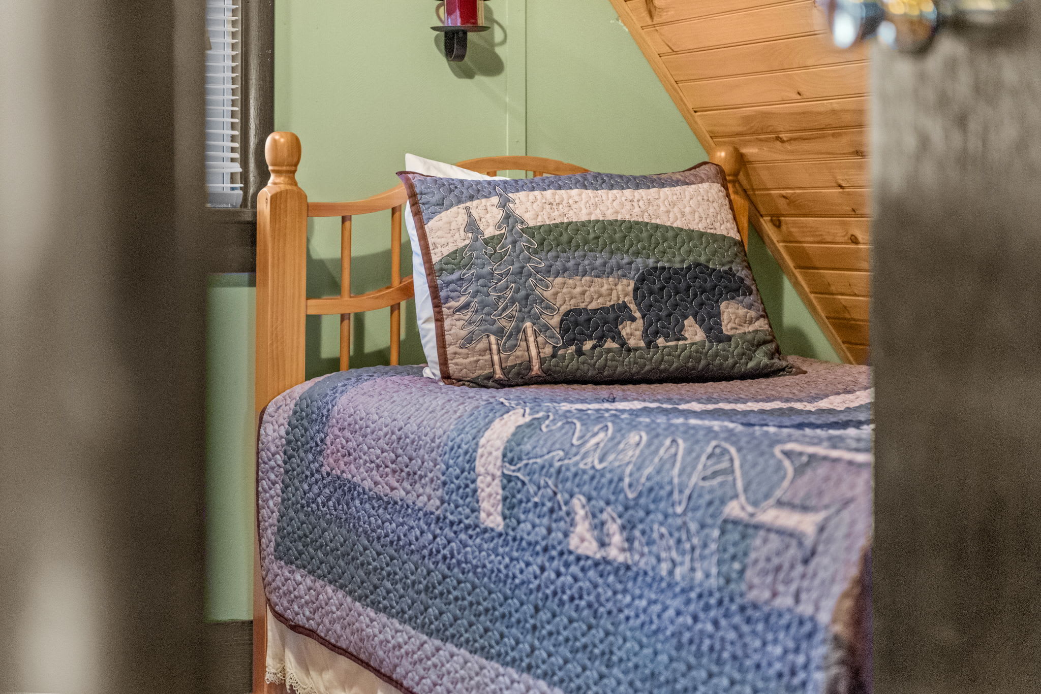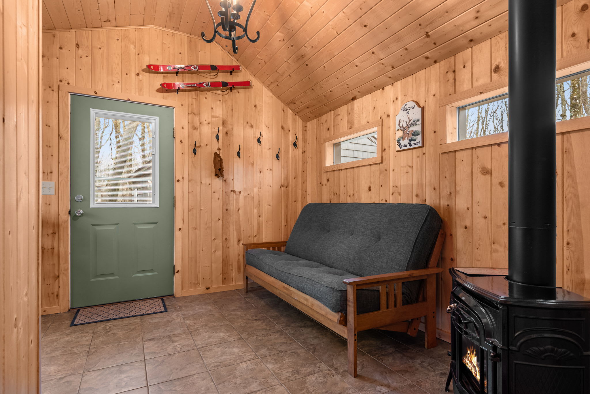 Whispering Pines Hideaway offers two inviting bedrooms and one and a half bathrooms, ensuring both comfort and privacy for all guests. The home’s interiors have been thoughtfully updated to reflect a contemporary yet rustic lifestyle, providing a comfortable and stylish stay.
