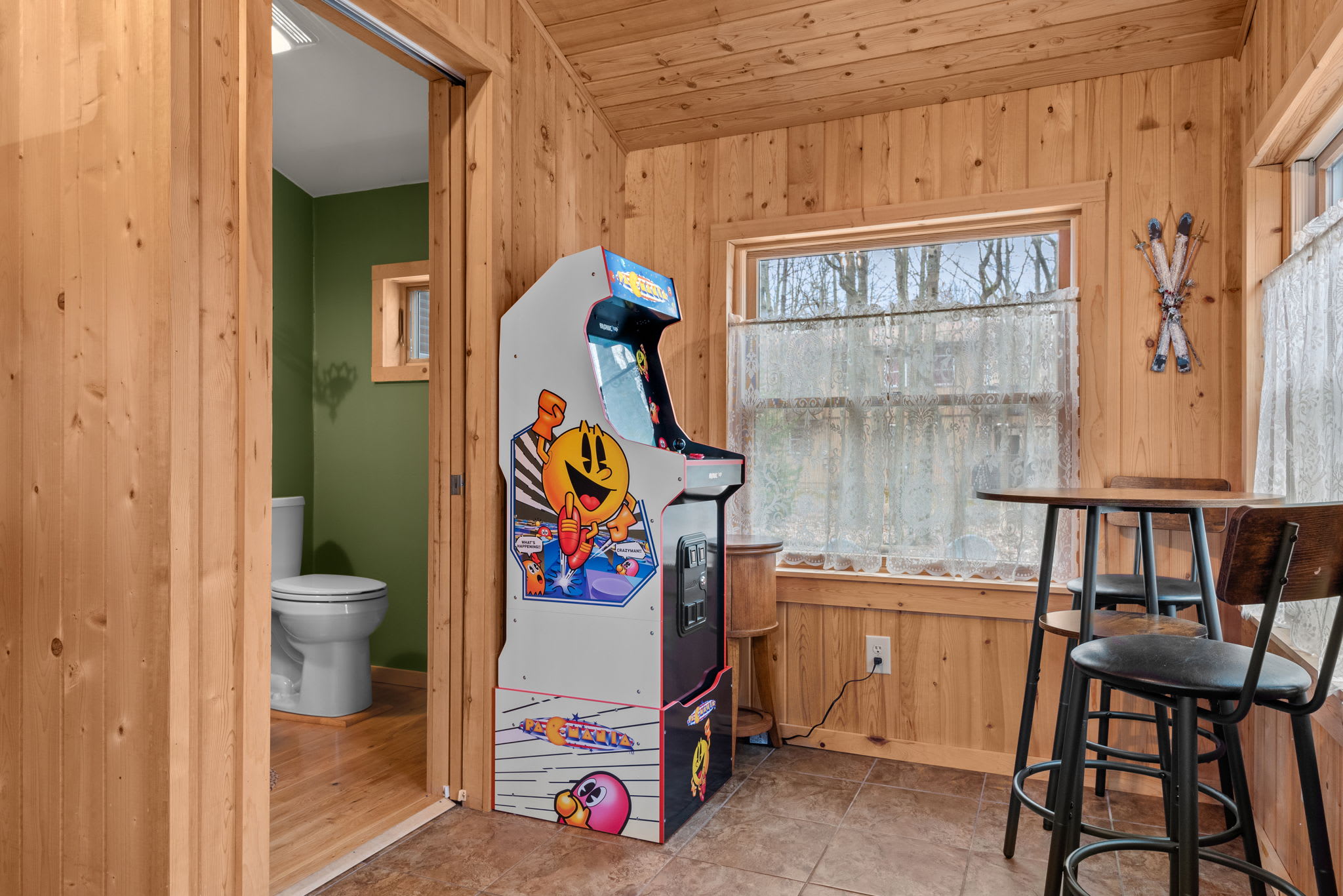 Indoors, the home features three TVs, allowing guests to enjoy their favorite shows and movies in any room. For a touch of nostalgia, challenge your family or friends to a game on our vintage Pac-man arcade machine. Outdoors, the newly installed fire-pit area is a perfect spot for evening gatherings, roasting marshmallows, or simply enjoying a warm fire under the stars.