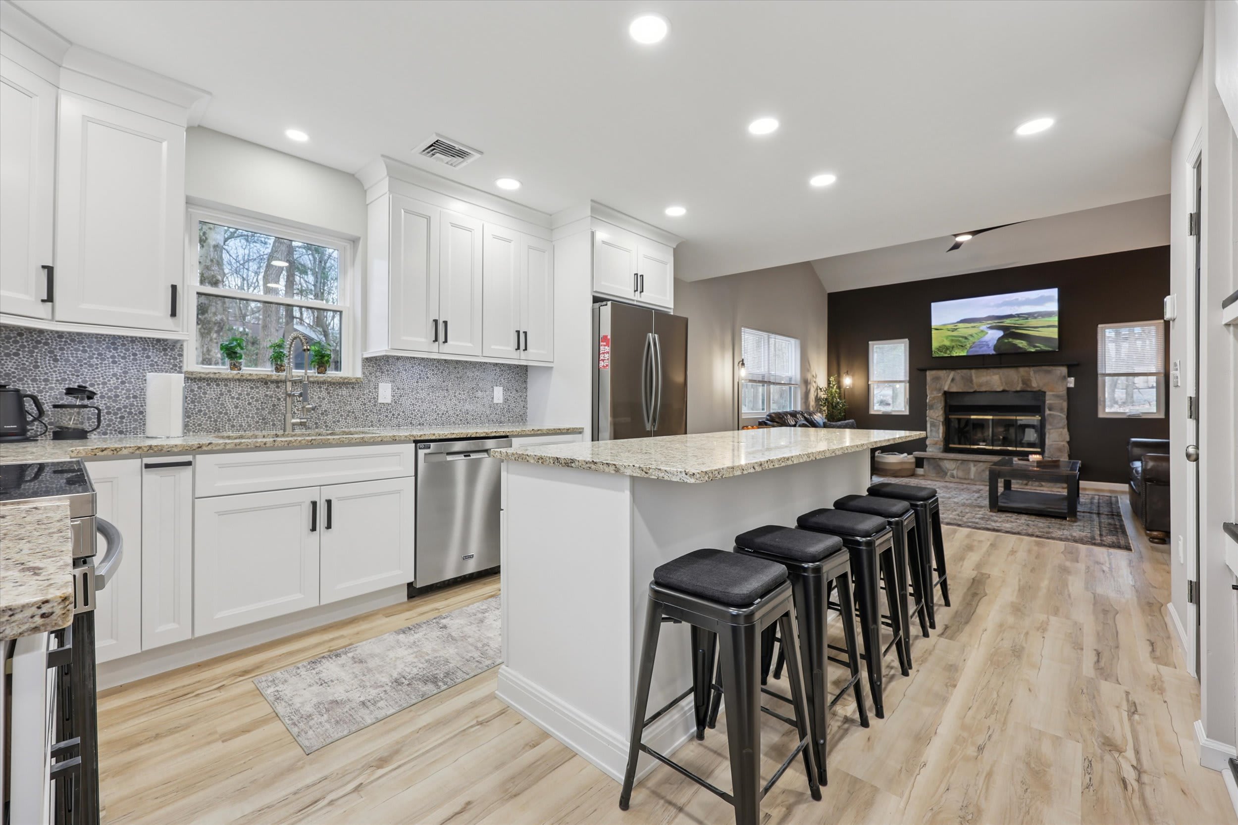 🍳 Eat-in kitchen with 6 island seats + small round table (4 chairs)