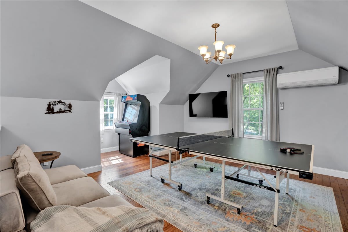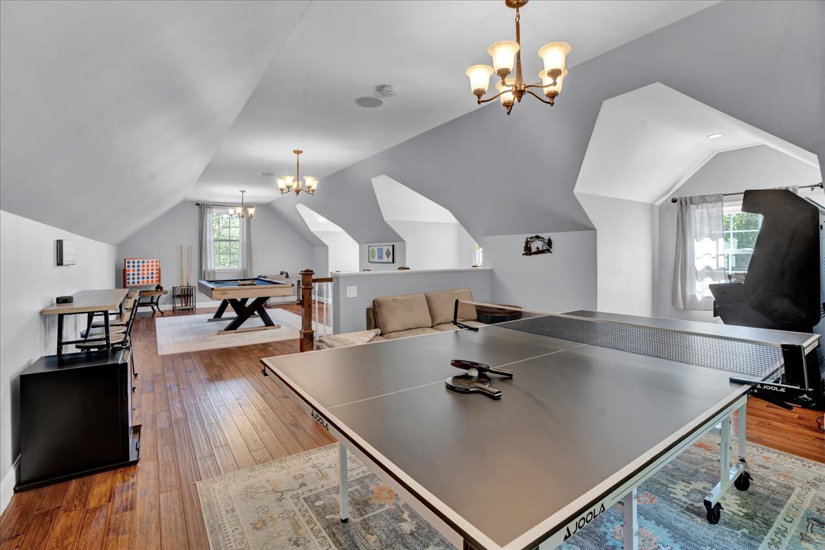 ● Game room – pool, foosball, ping-pong, mini air hockey, chess table, arcade machine, large connect 4, mini fridge