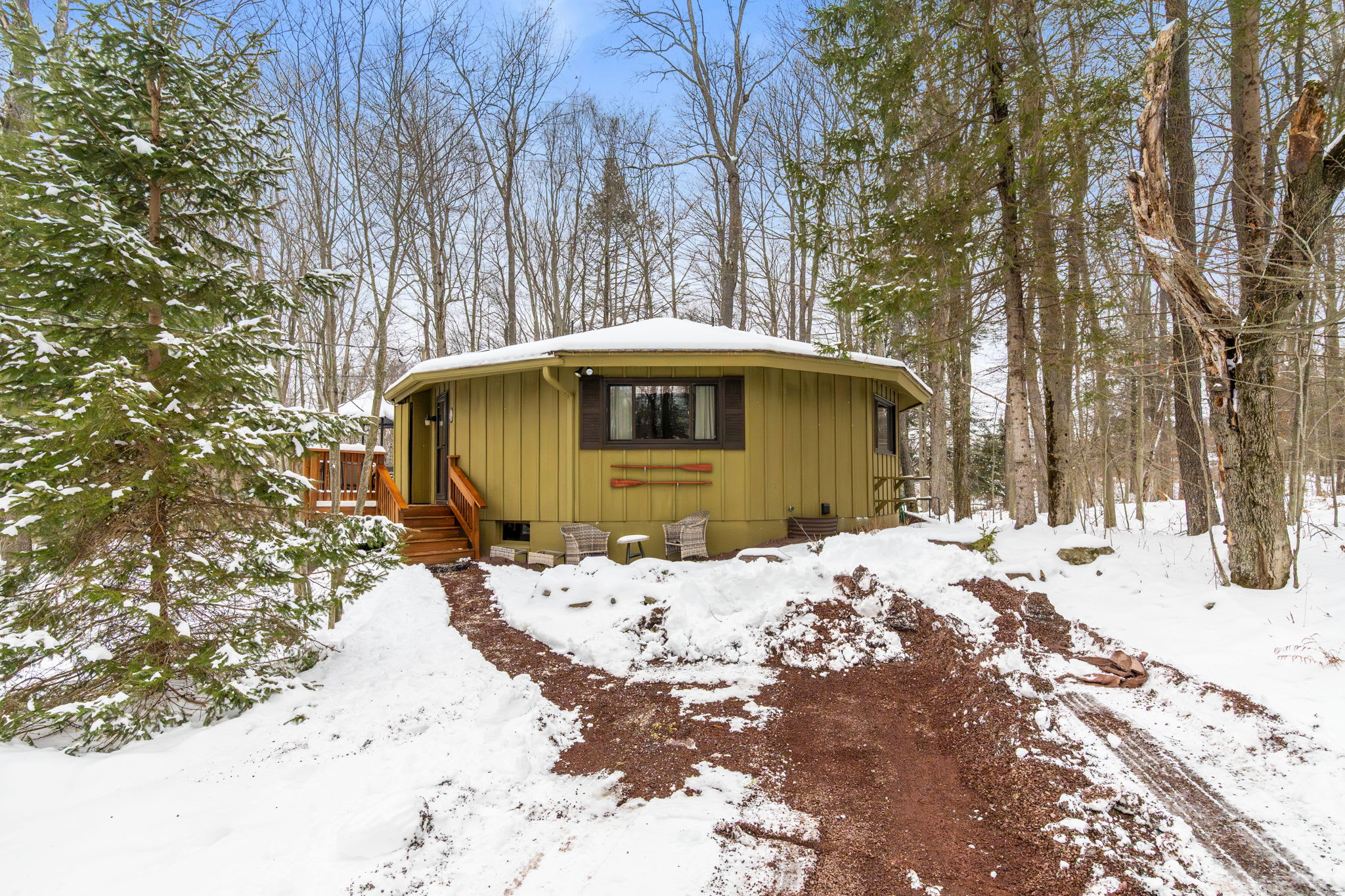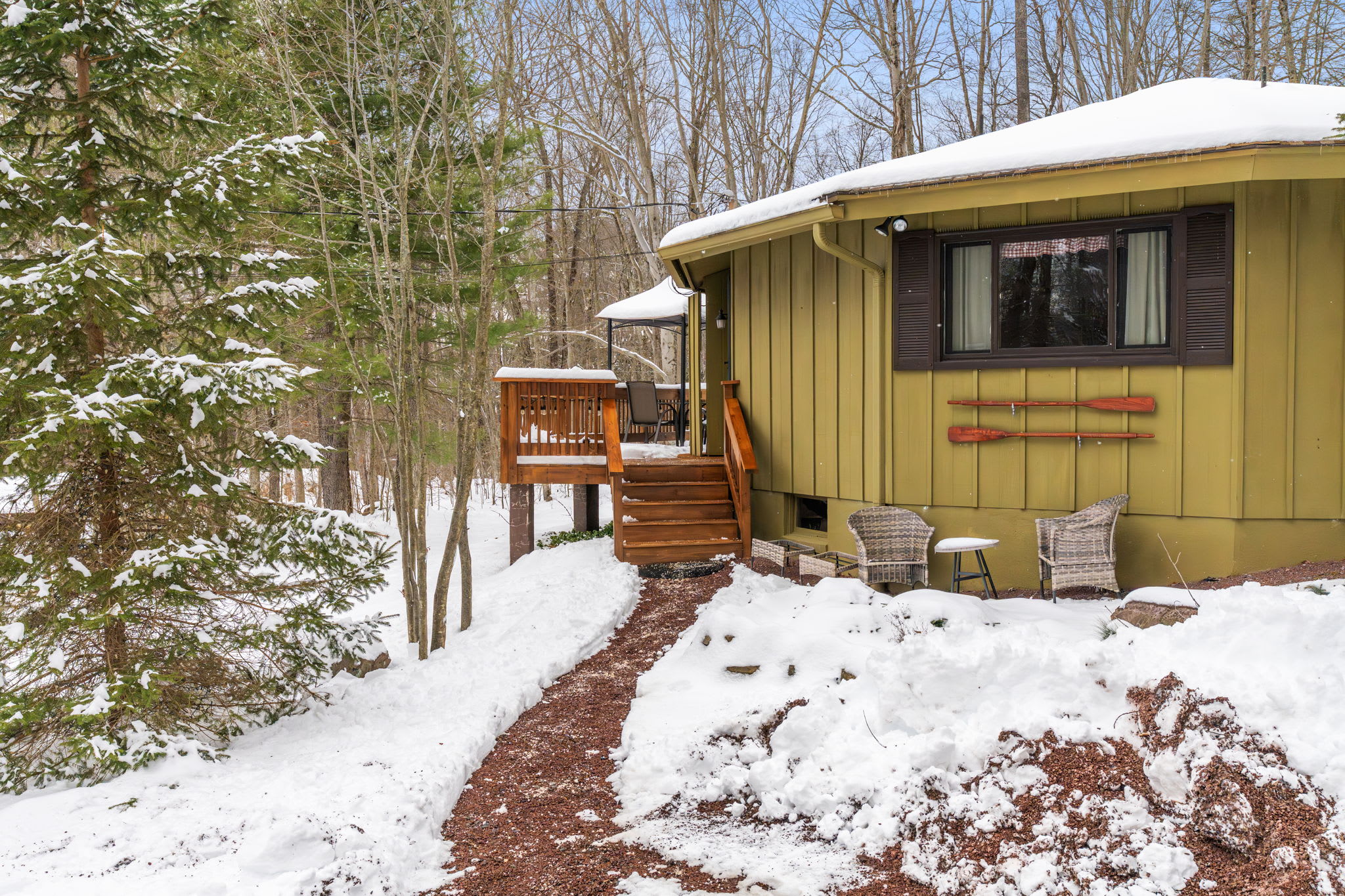 Outside, you are surrounded by nature on a wooded lot of roughly half an acre, with space to breathe, sip morning coffee, and unwind after a day out. The Lake Naomi community offers a serene setting close to lakes, trails, and a wide range of amenities, and you are within easy driving distance of skiing, waterparks, dining, and classic Pocono attractions.