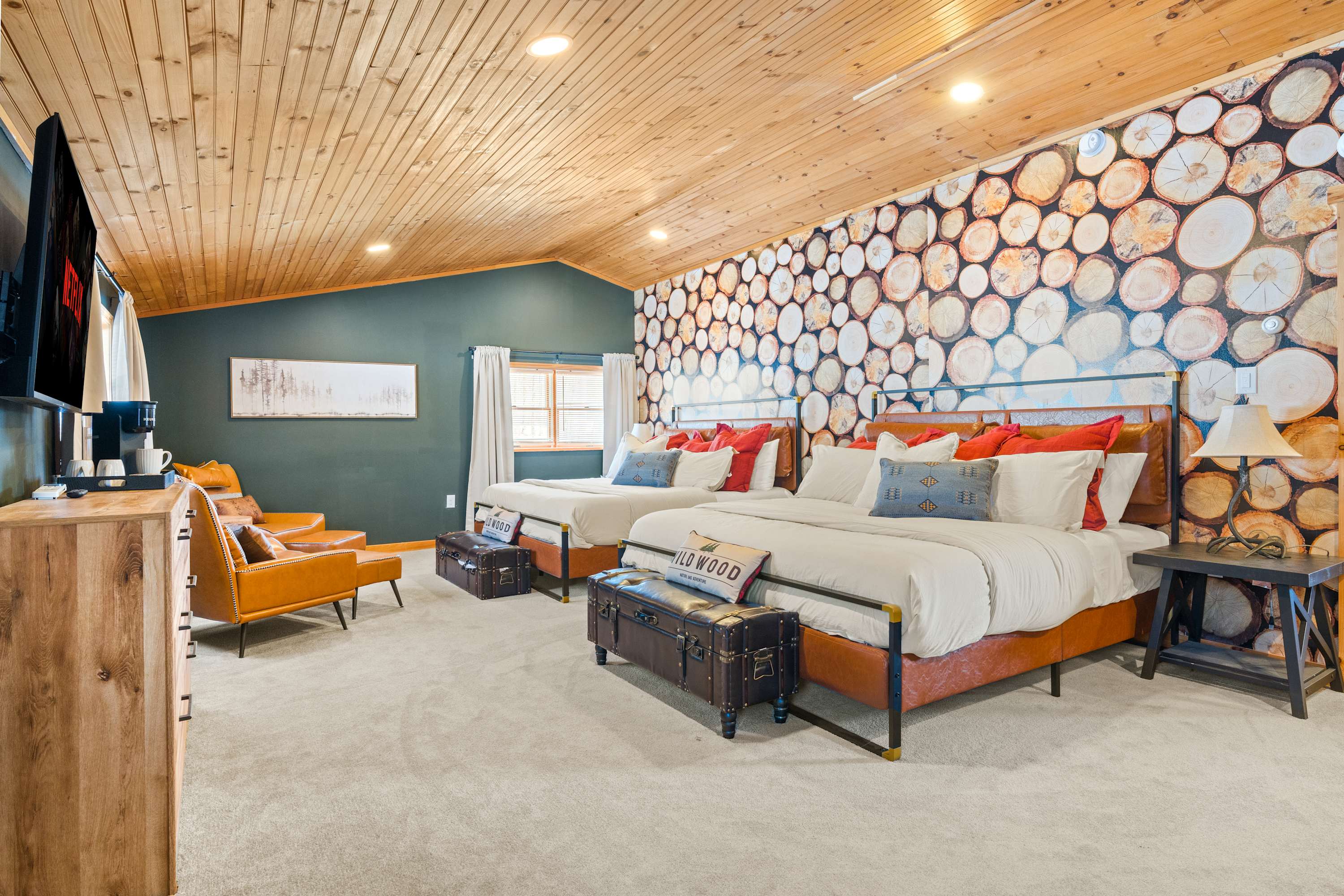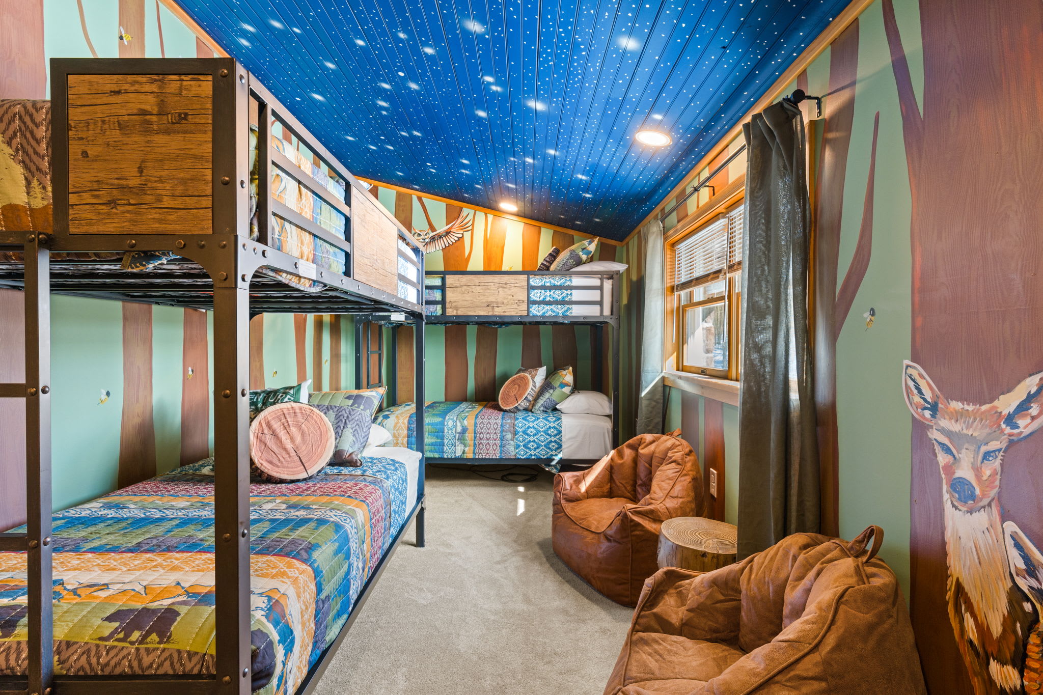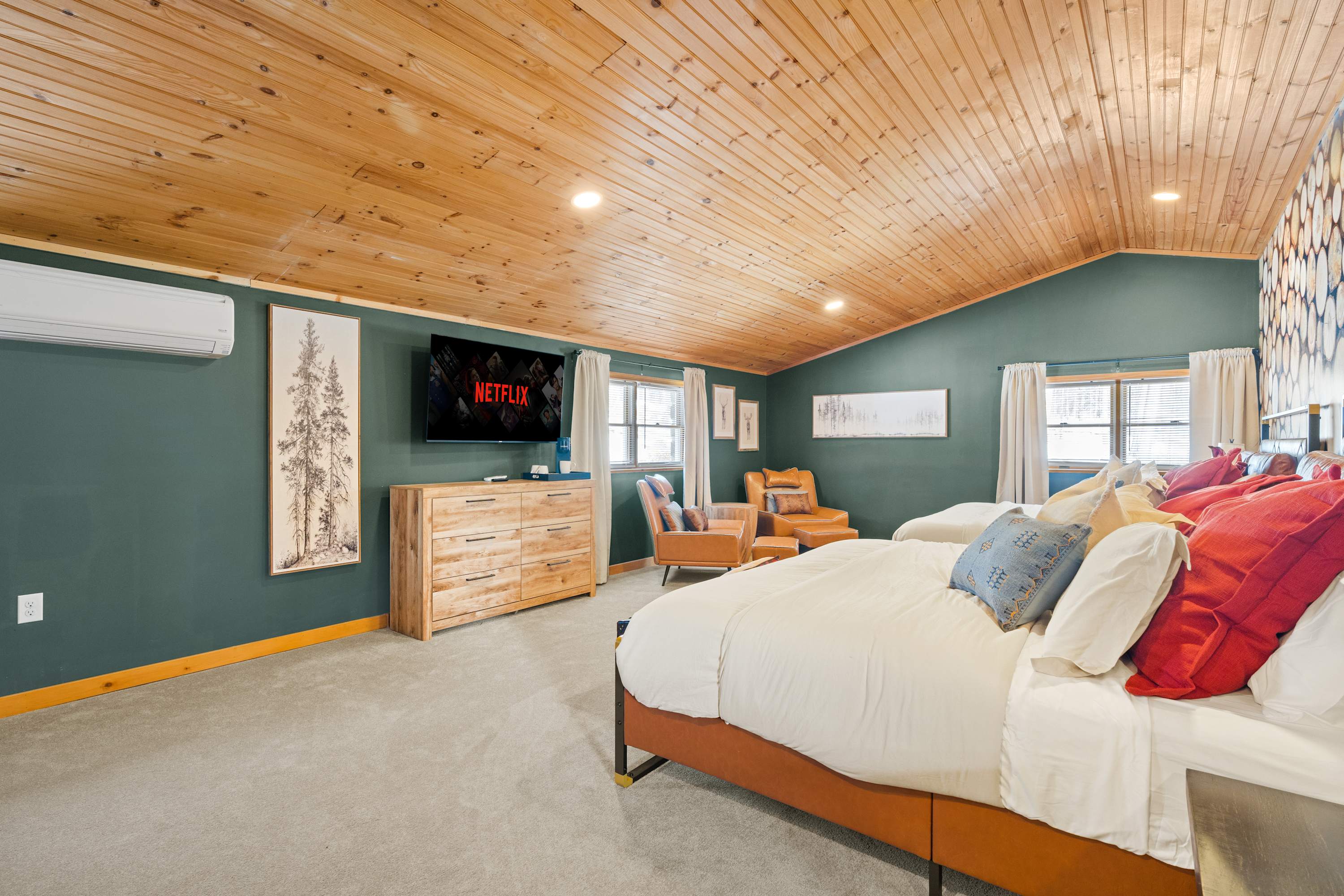 The main house is over 5,000 square feet and thoughtfully laid out for groups and longer stays. It features 7 spacious bedrooms, 4 full bathrooms, and two bonus rooms currently set up as offices. Perfect for remote work, extended family stays, or extra sleeping or lounge space.