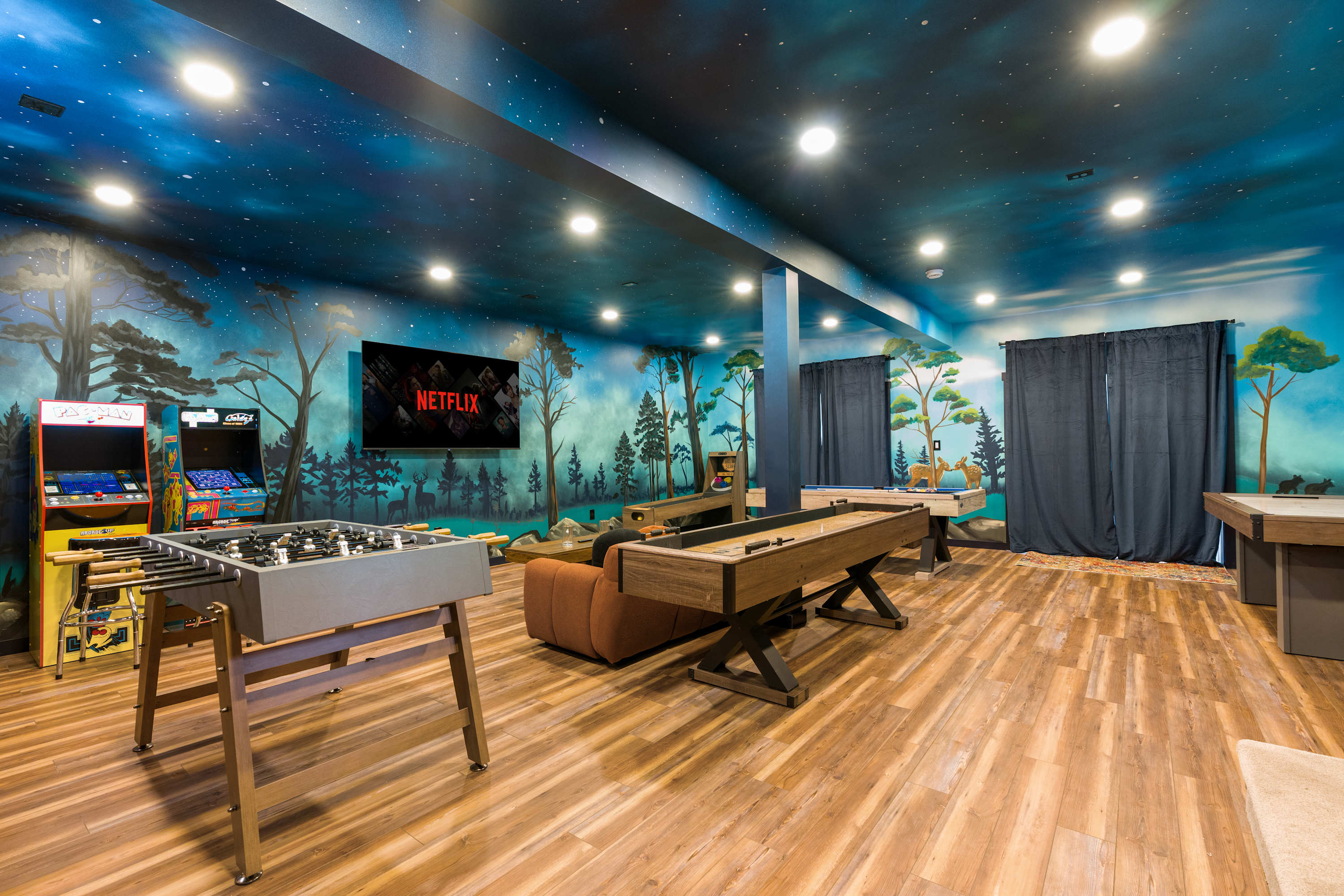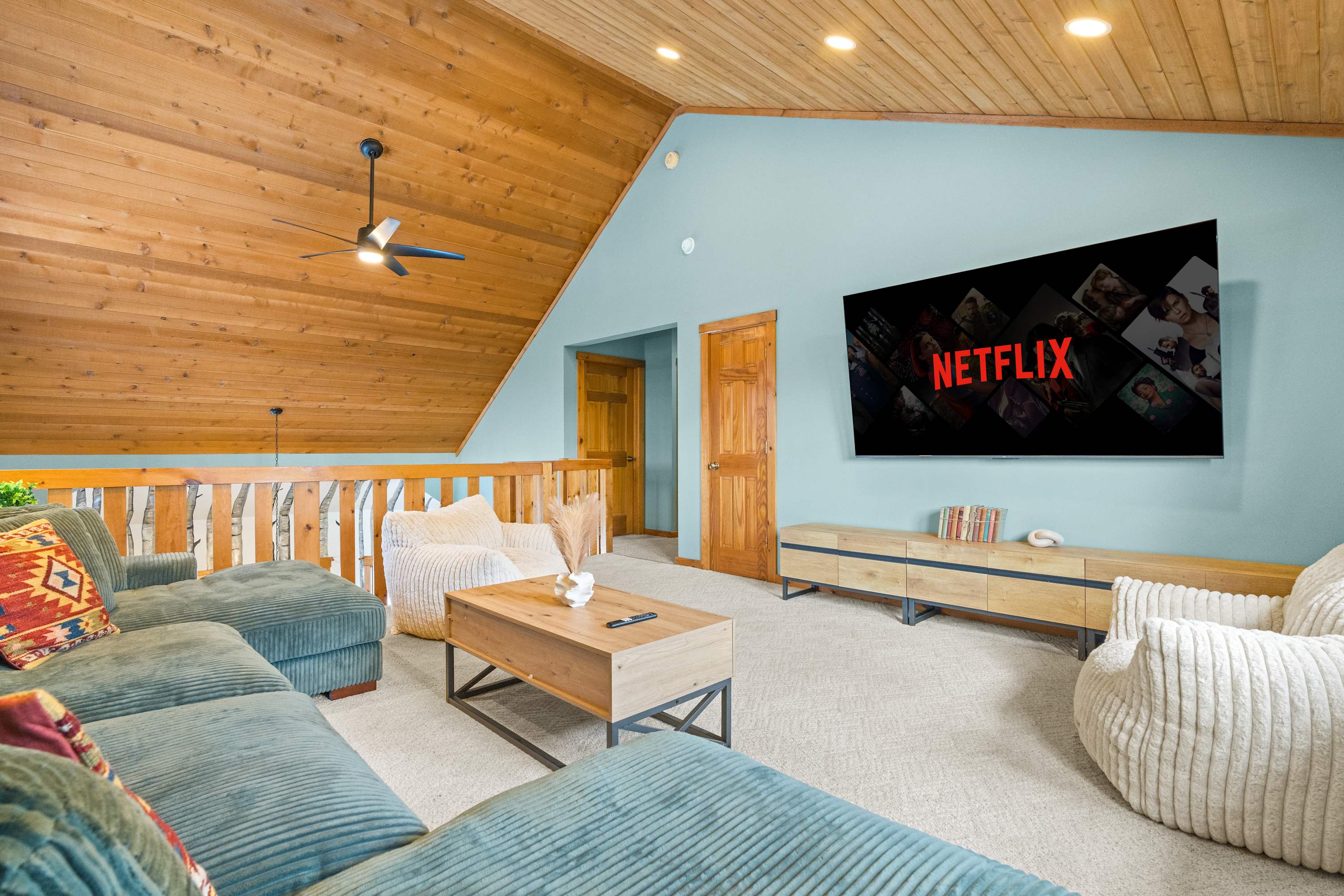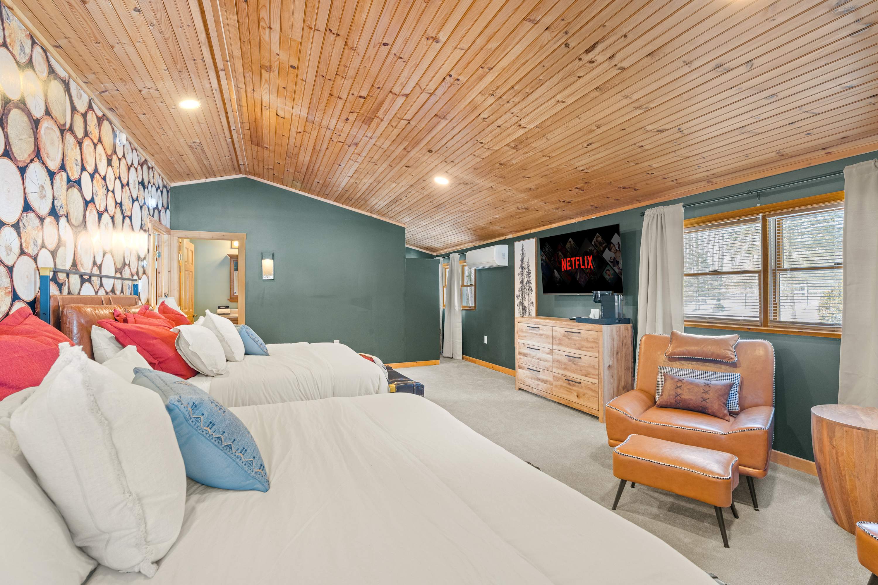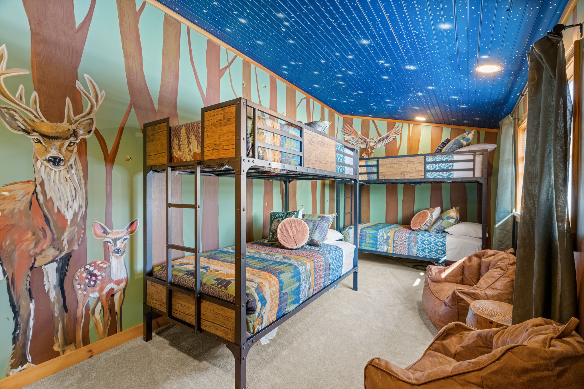 The main house is over 5,000 square feet and thoughtfully laid out for groups and longer stays. It features 7 spacious bedrooms, 4 full bathrooms, and two bonus rooms currently set up as offices. Perfect for remote work, extended family stays, or extra sleeping or lounge space.