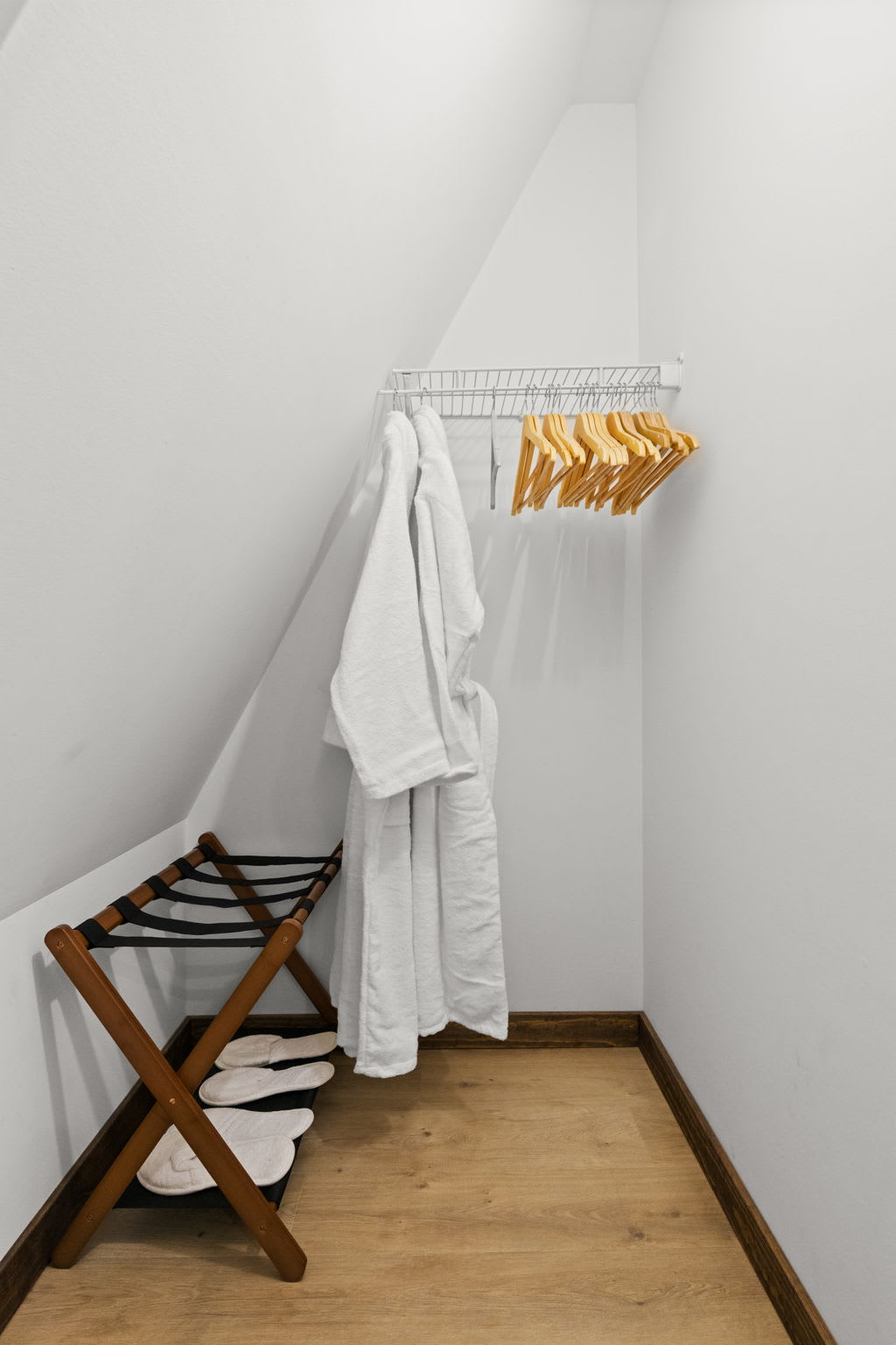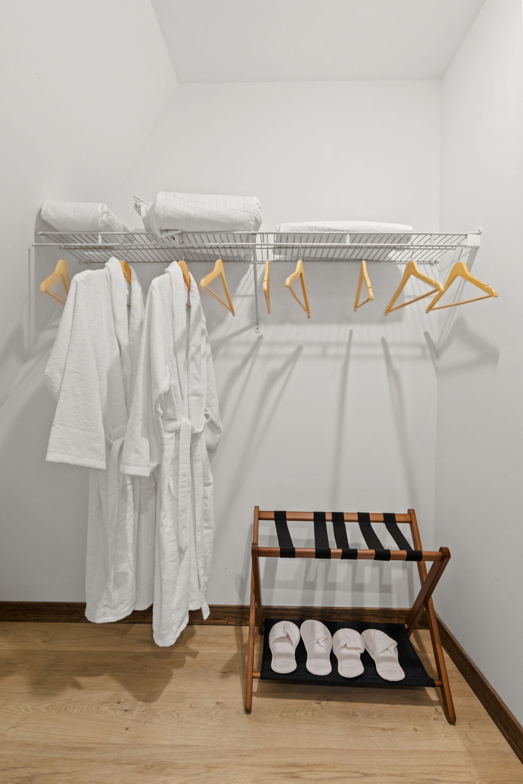 Upstairs, the loft hangout adds extra breathing room, with cozy seating under the A-frame peak. Bedrooms are bright, clean, and thoughtfully styled for real rest, not just sleep.