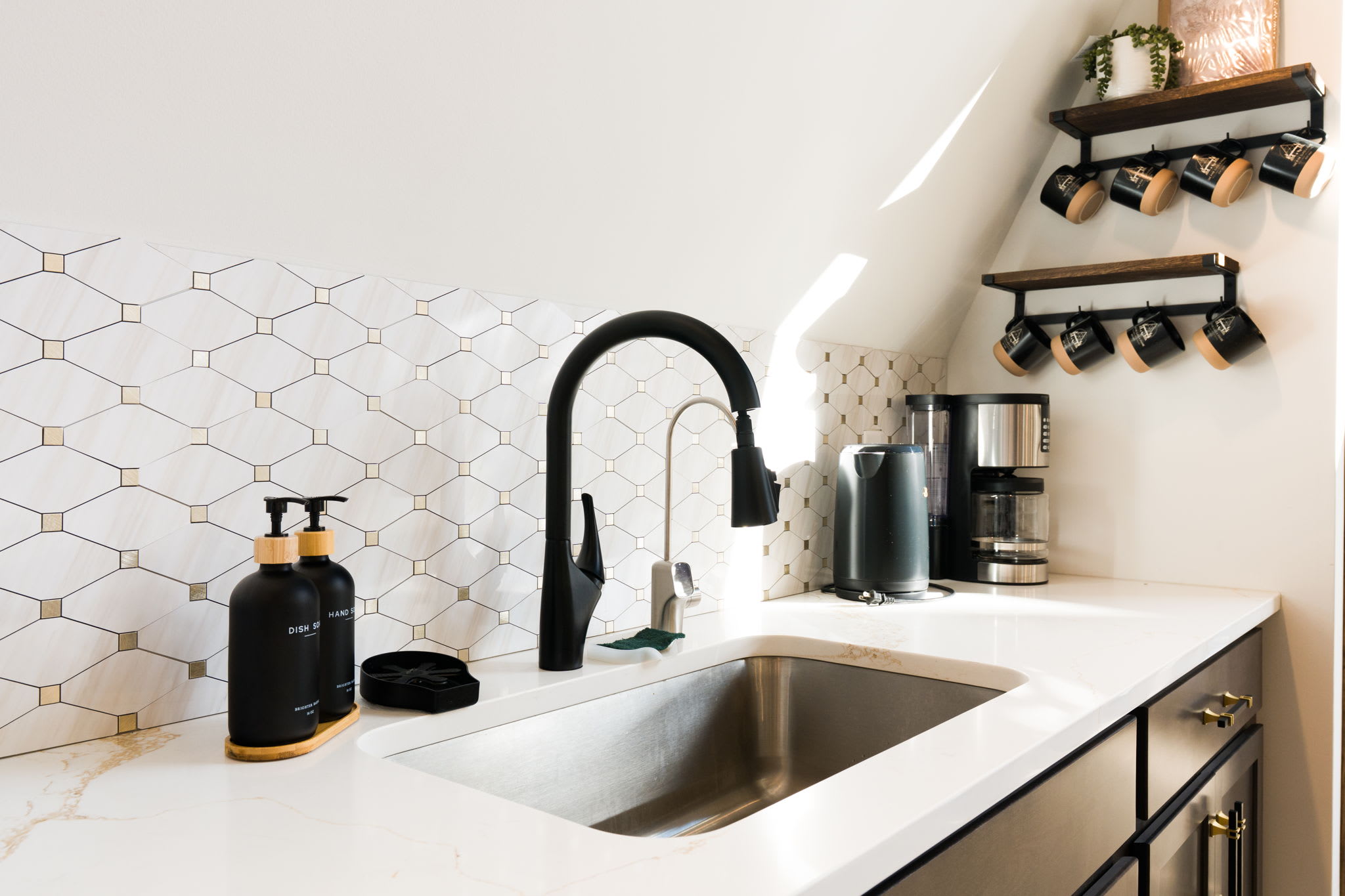 The kitchen is made for hosting. Youβll have an oversized island, plenty of prep space, modern finishes, and room for everyone to gather and eat together. Thereβs also a dedicated coffee setup for slow mornings and strong starts.