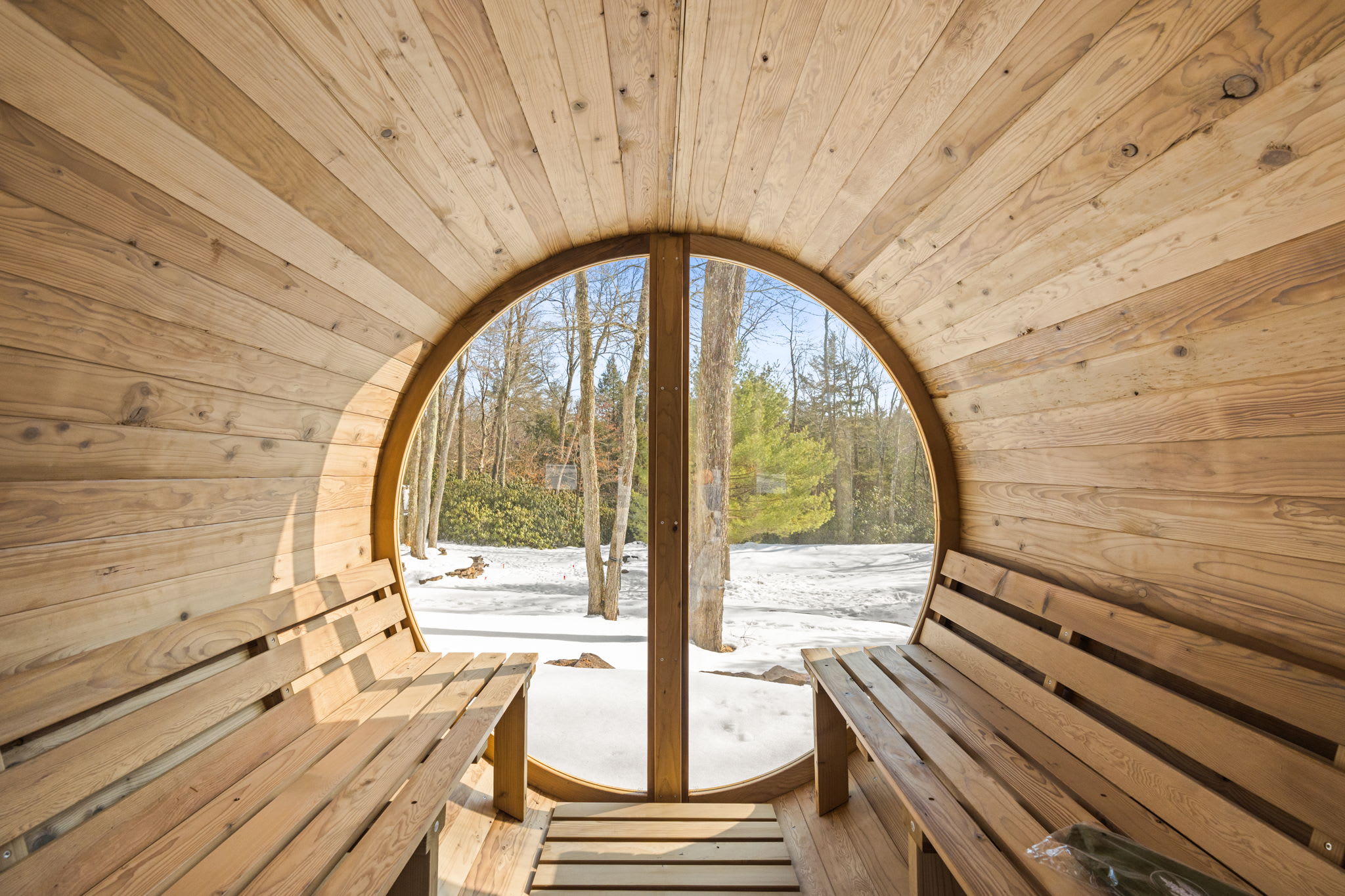 The hot tub does not just overlook the land. It overlooks the pond and your entire private 5-acre estate. ๐