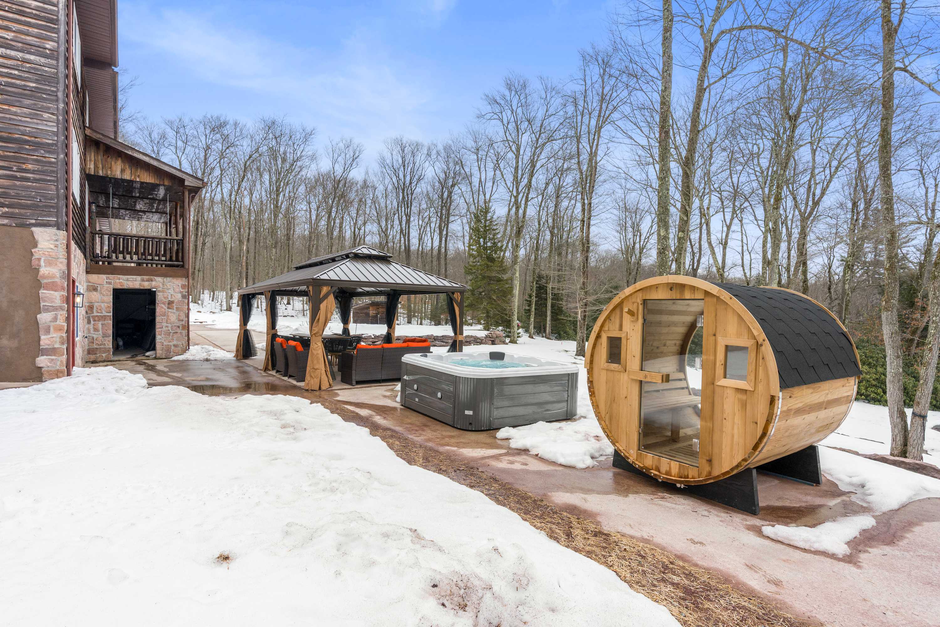 ๐ฒ Private 5-acre Pocono estate sleeping up to 20 guests. 7 bedrooms, 5 baths (4 en-suite), 5,000+ sq ft of space. Pool table, shuffleboard, air hockey, arcade games, poker table & bar. Hot tub overlooking pond, barrel sauna, 20 ft gazebo, playground & fenced yard. Minutes to Big Boulder, Jack Frost & Hickory Run. True privacy. True retreat. ๐๏ธ