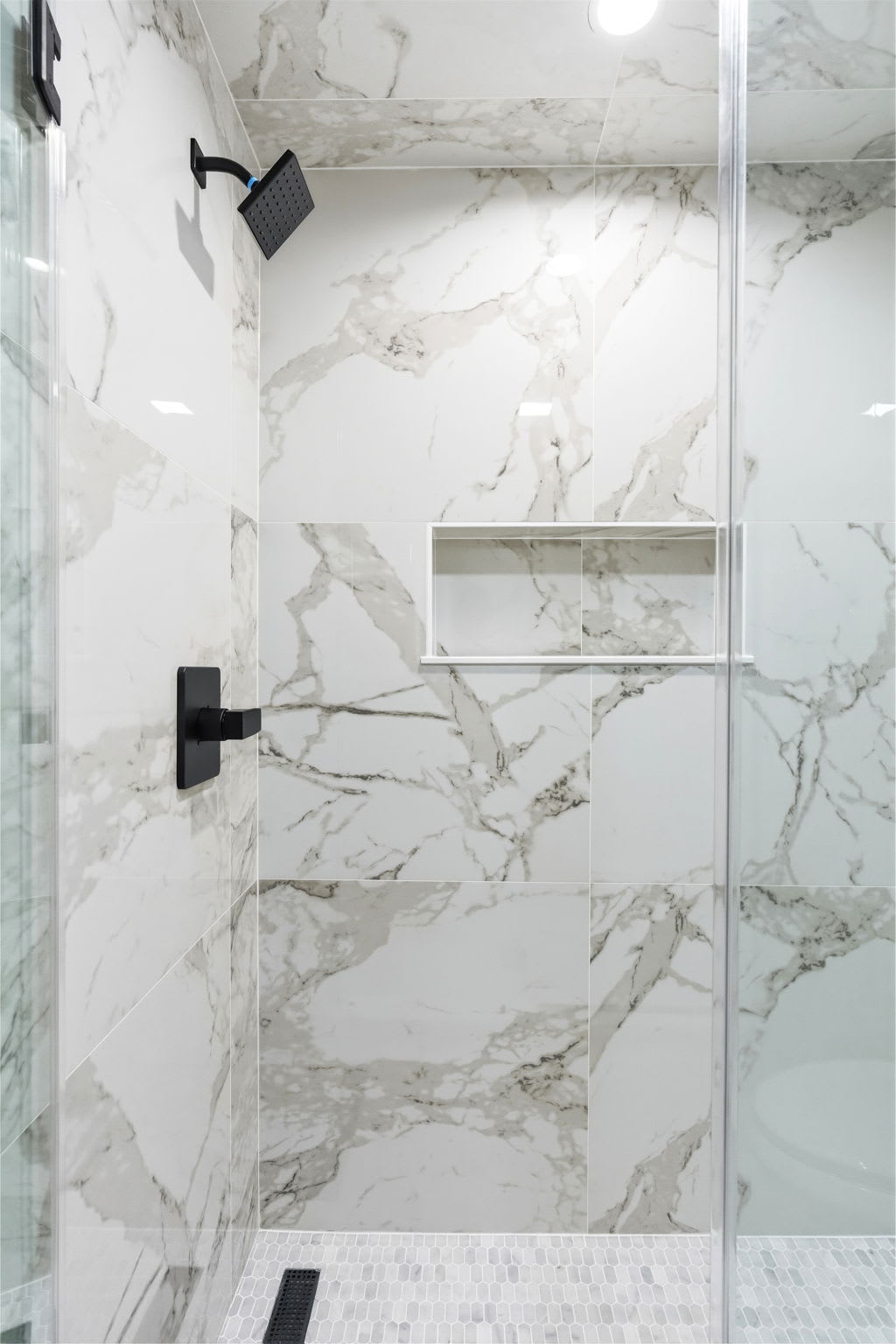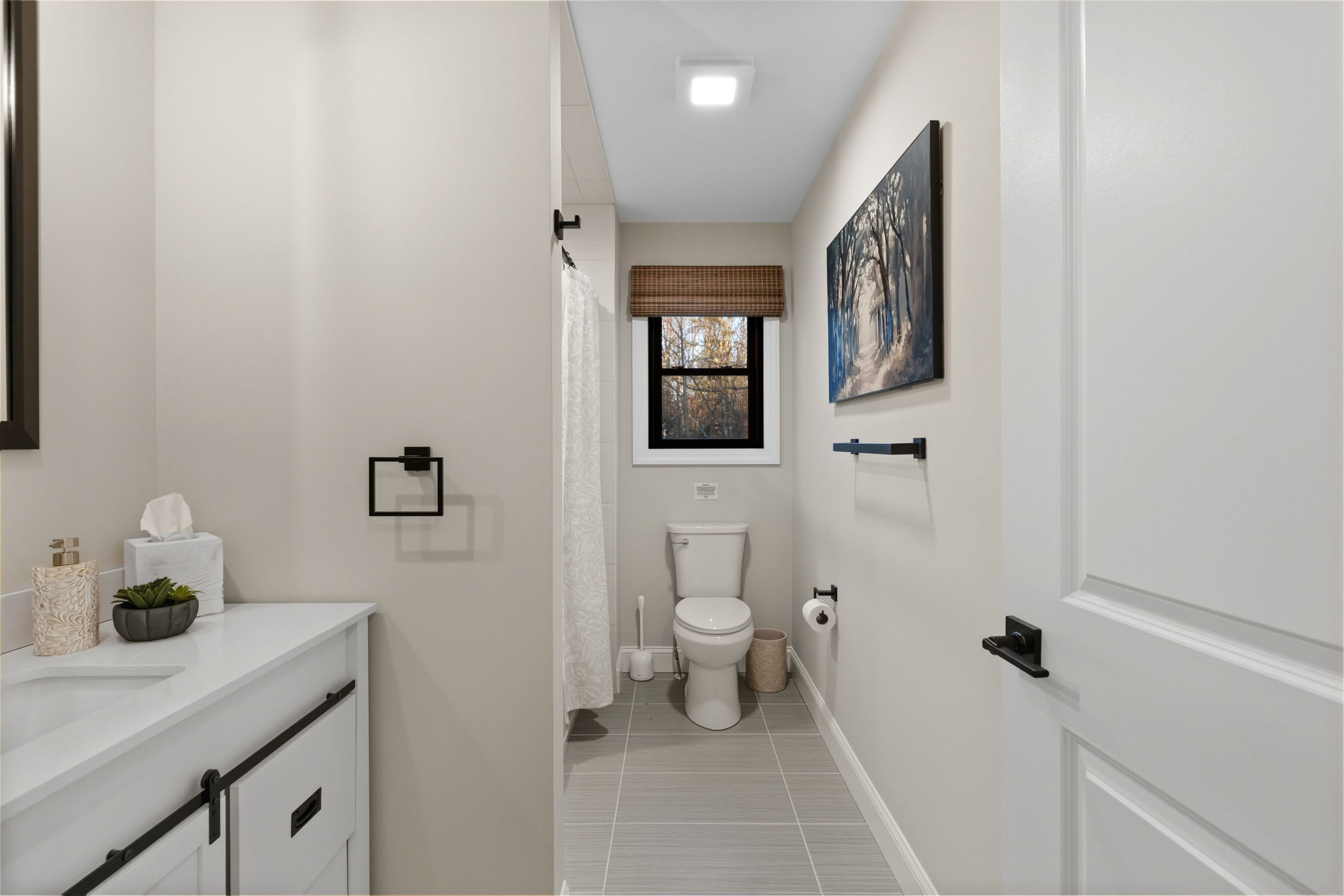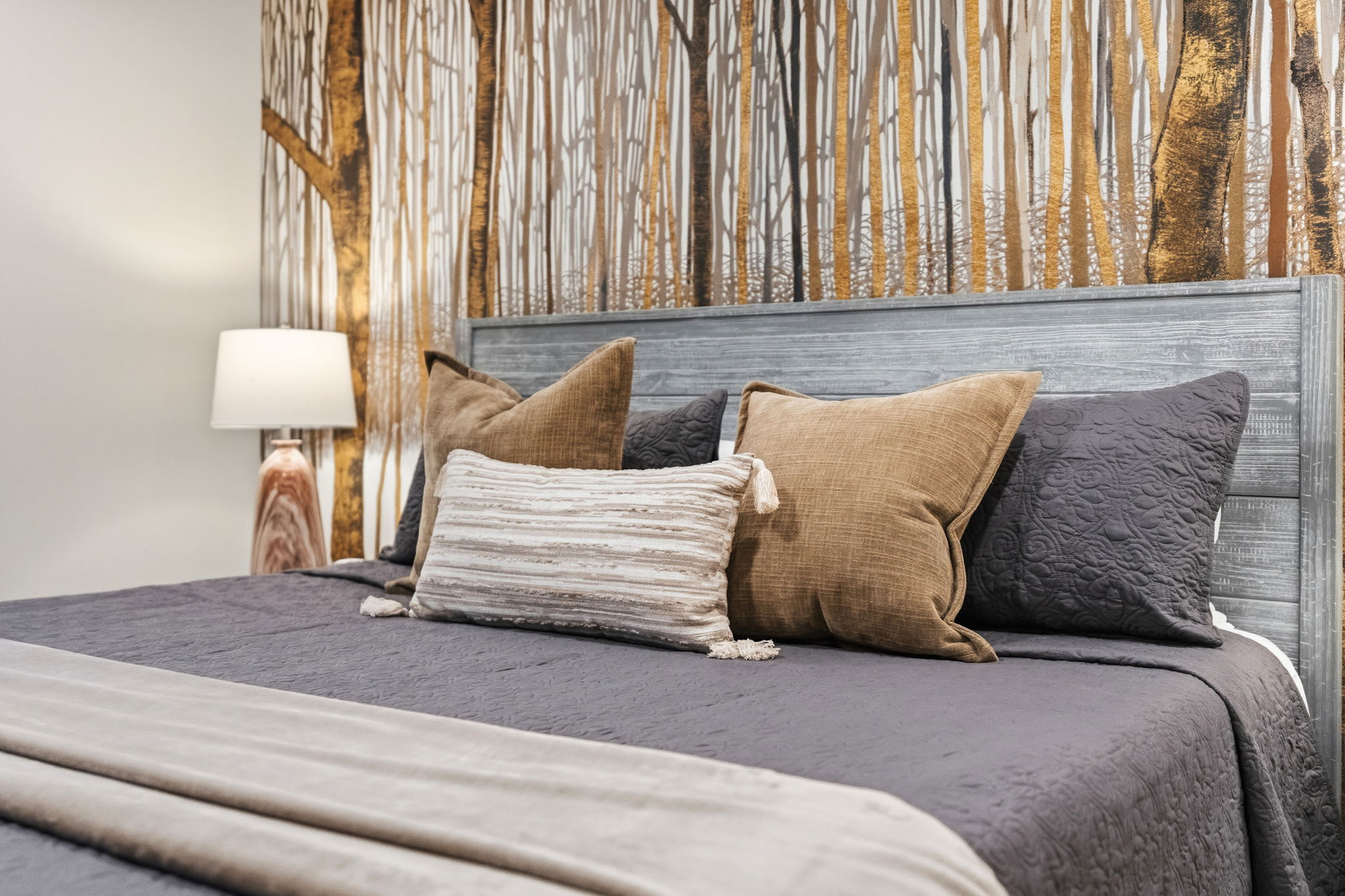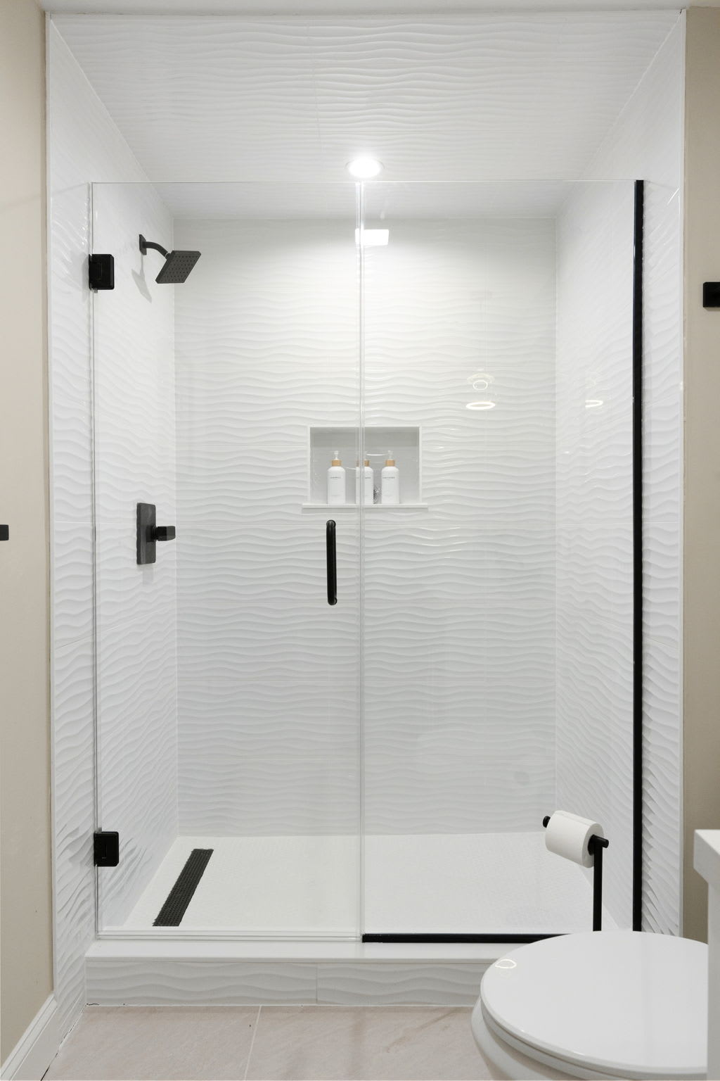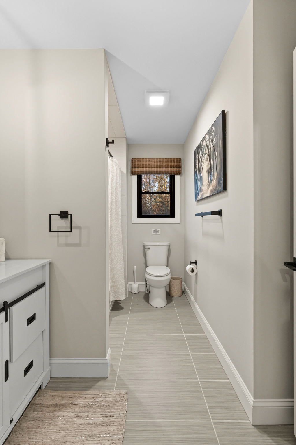 Every bedroom is uniquely designed with accent walls, quality bedding, ceiling fans, dressers, and Smart TVs. With 5 full bathrooms spread across all three floors, there's never a wait. Bathrooms feature modern vanities, black hardware, glass walk-in showers, and marble tile floors. 🛁